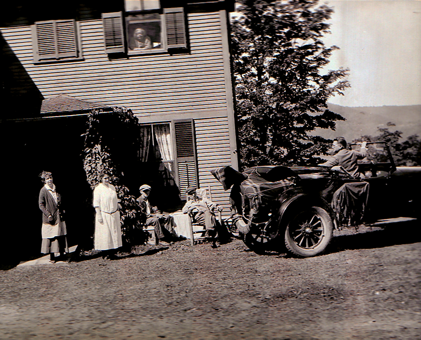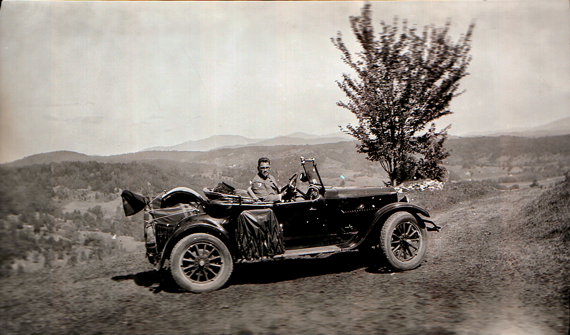 We have a theory for the history of this painting that fits with Woodward's typical past practices. He visited Mrs. Dresser around 1927 or '28, took the pictures you see on this page of him in the 1923 Studebaker. He was there to paint the Norton farm. He makes two pastels, Saddleback Barn, and Vermont Barns (Chalk), as well as paints In Vermont (probably finishing it in his home studio). Years prior, Mrs. Dresser had bought a painting he made from her property named, September Mountain (c. 1925) and she already owned Silent Evening which is a pre-1922 Redgate canvas and we believe he lent Mrs. Dresser this painting as a gift of appreciation.