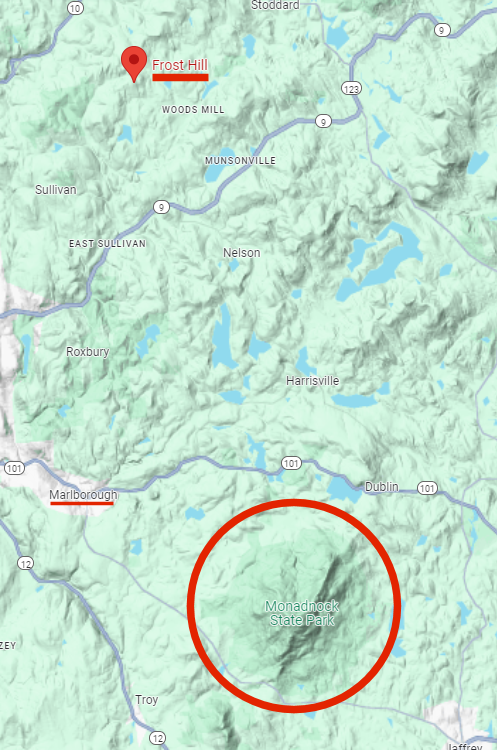 between Keene, NH and Mt. Monadnock. Marlboro, Vermont would be very much out of the way for this