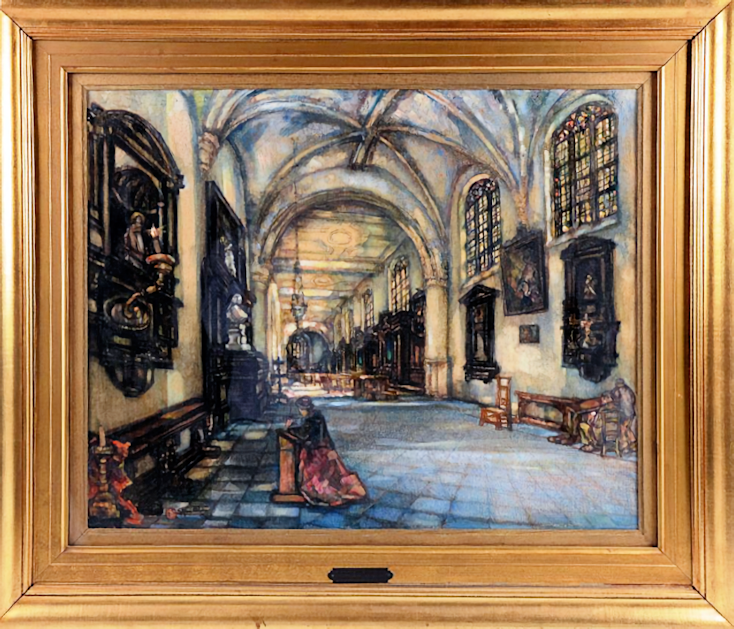 Ms. Matthews does not specifically name When Corn Is Ripe in the article, but does it matter looking at Delaunois's artwork to the left? Comparing the church interior to the painting above elevates the barn just as Matthews reasoned. Woodward could have named the pastel, "New England Church" and no one would bat an eye.