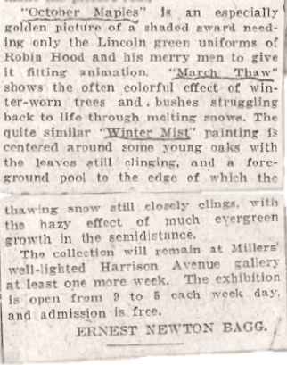 "... October Maples is an especially golden picture of a shaded sward needing only the Lincoln green uniforms of Robin Hood and his merry men to give it fitting animation ..." Springfield Union, May 15, 1922 by Ernest Newton Bagg