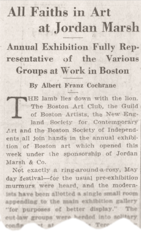 1931 "Art Week" show sponsored by the Jordan Marsh Department Store hung paintings that hung at the
